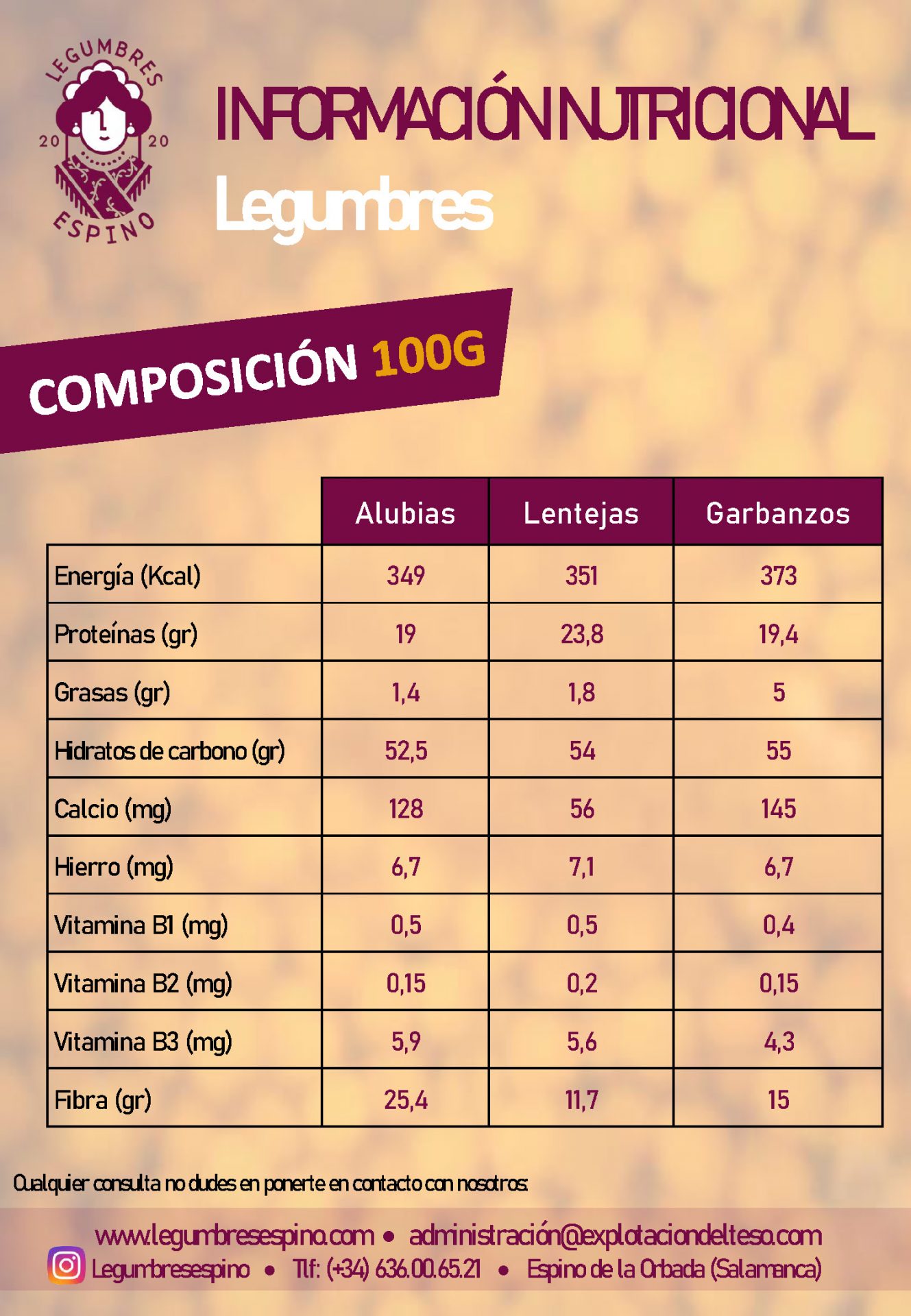 Puedes escribirnos a administracion@legumbresespino.com
